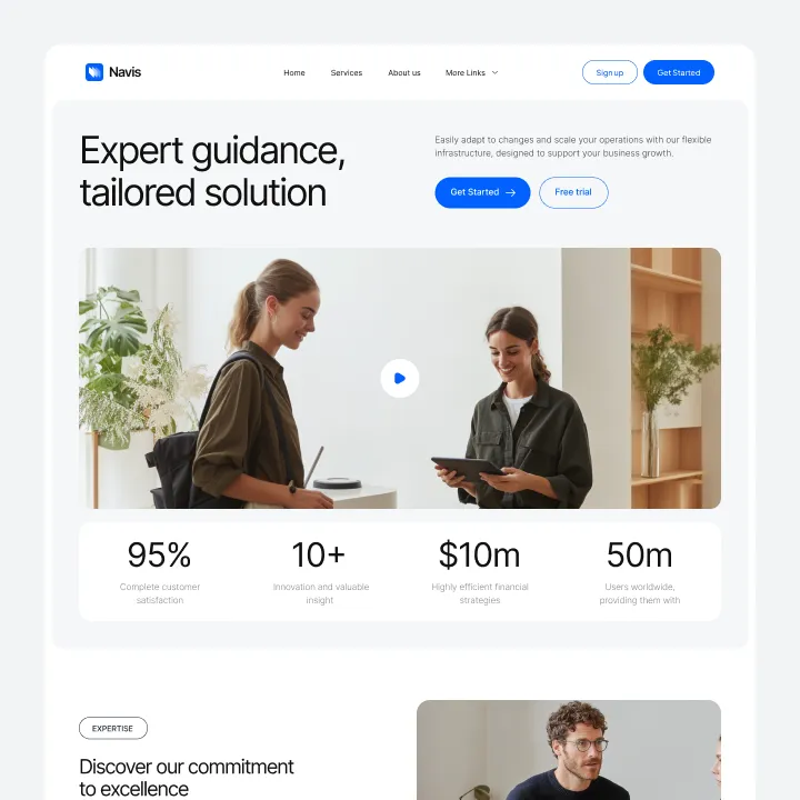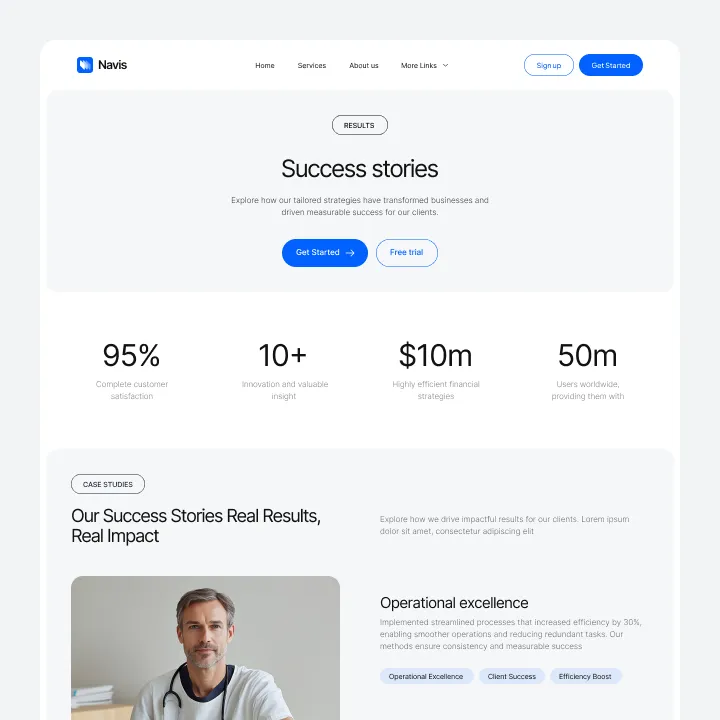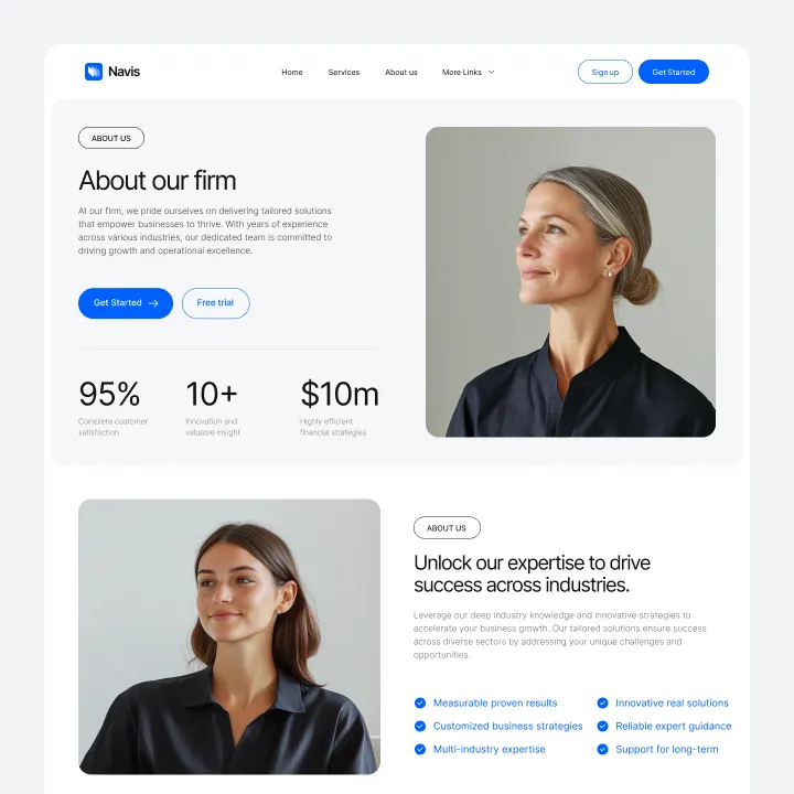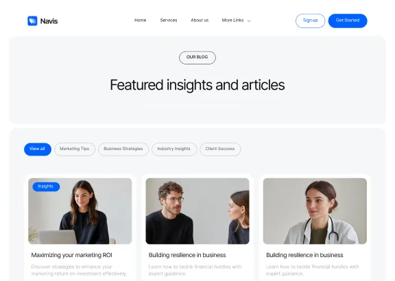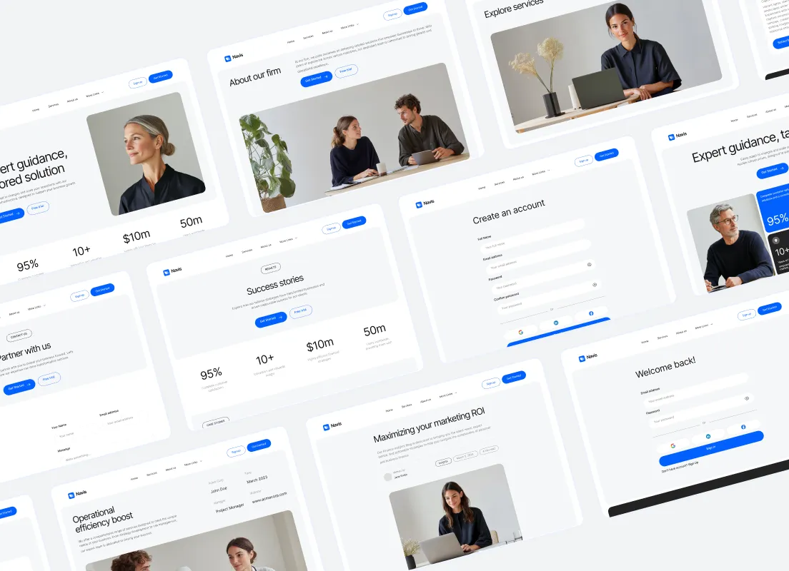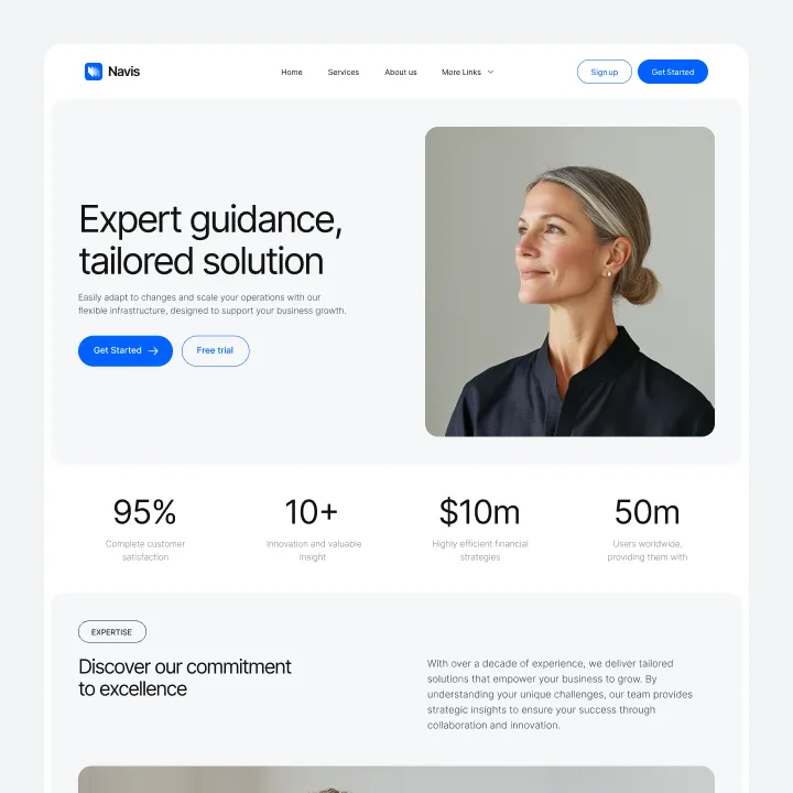 Navis Webflow Template offers customizable header and footer, seamlessly adapting to your business needs.
