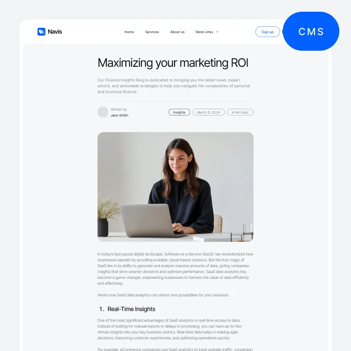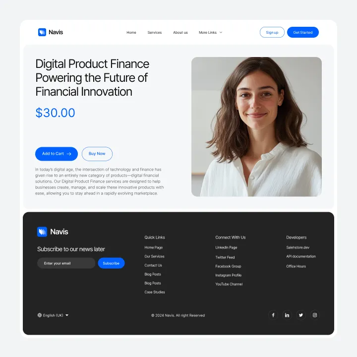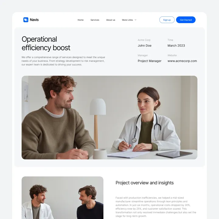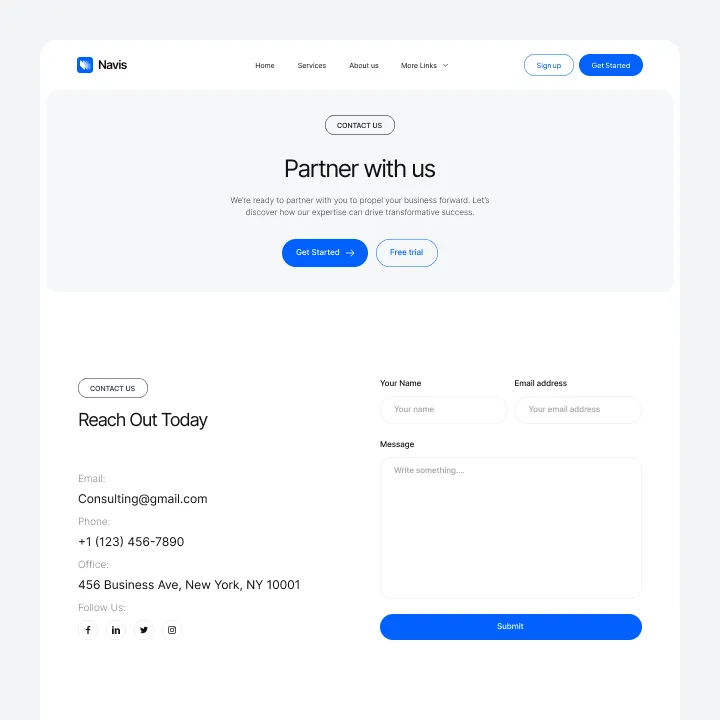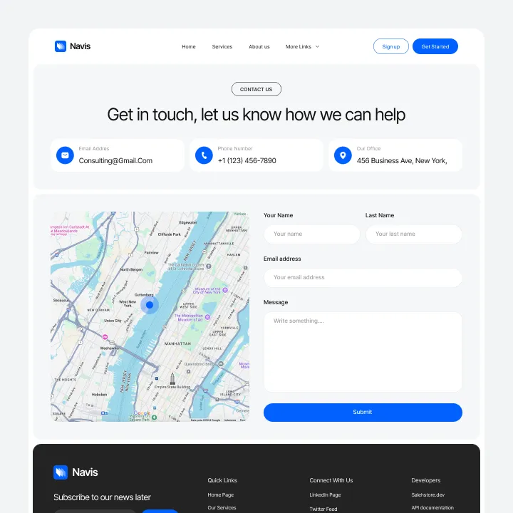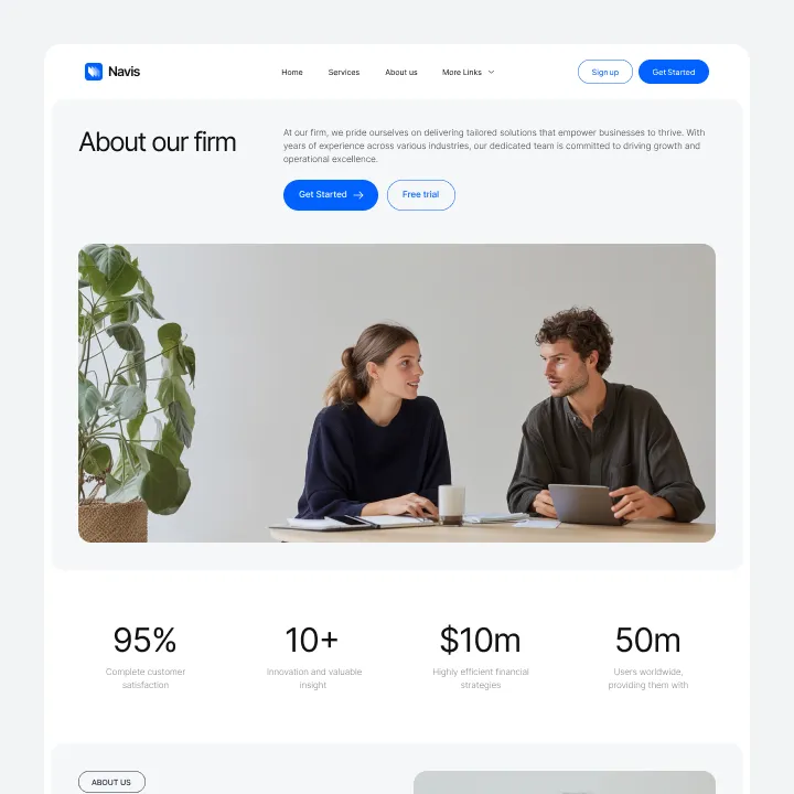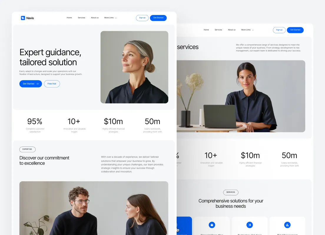 Navis Webflow Template offers customizable header and footer, seamlessly adapting to your business needs.